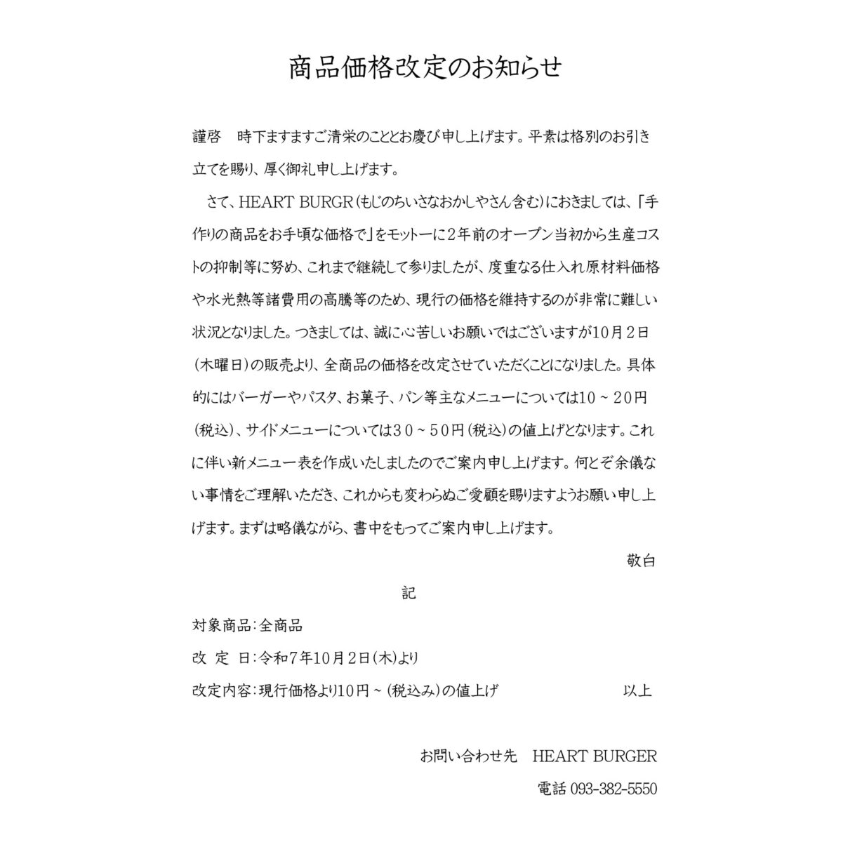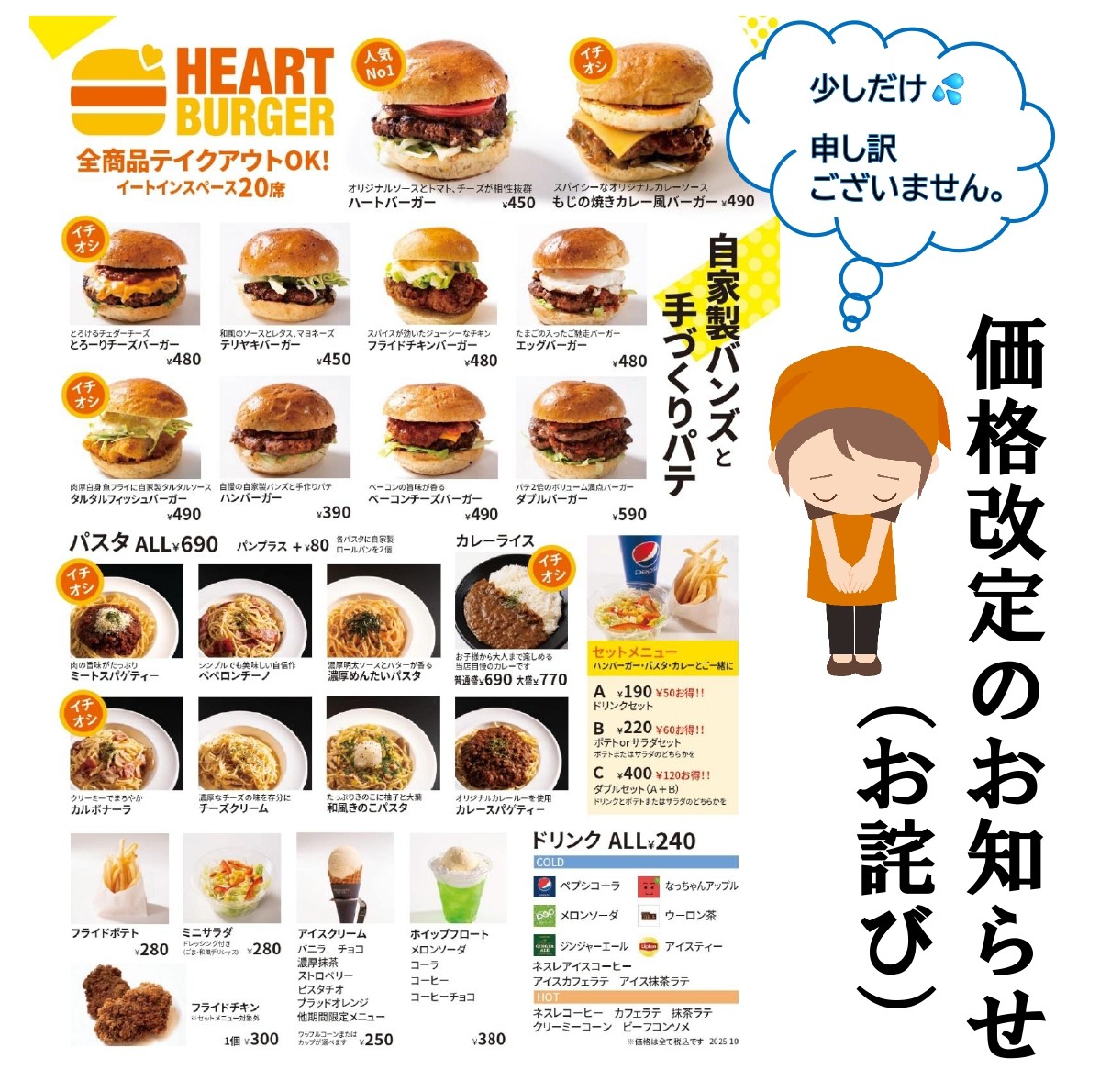 【HEART BURGER】商品価格改定のお知らせ(お詫び)