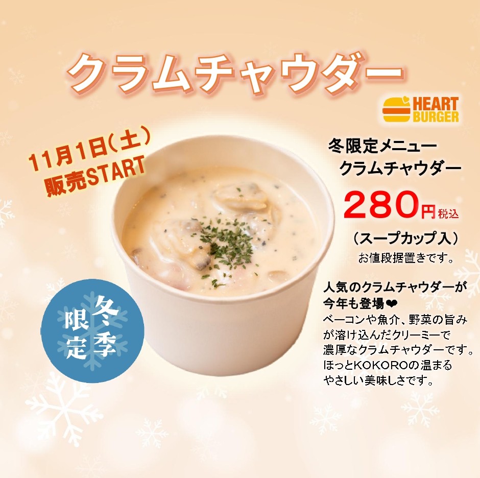 冬季限定クラムチャウダー今年も11月1日(土)より発売。